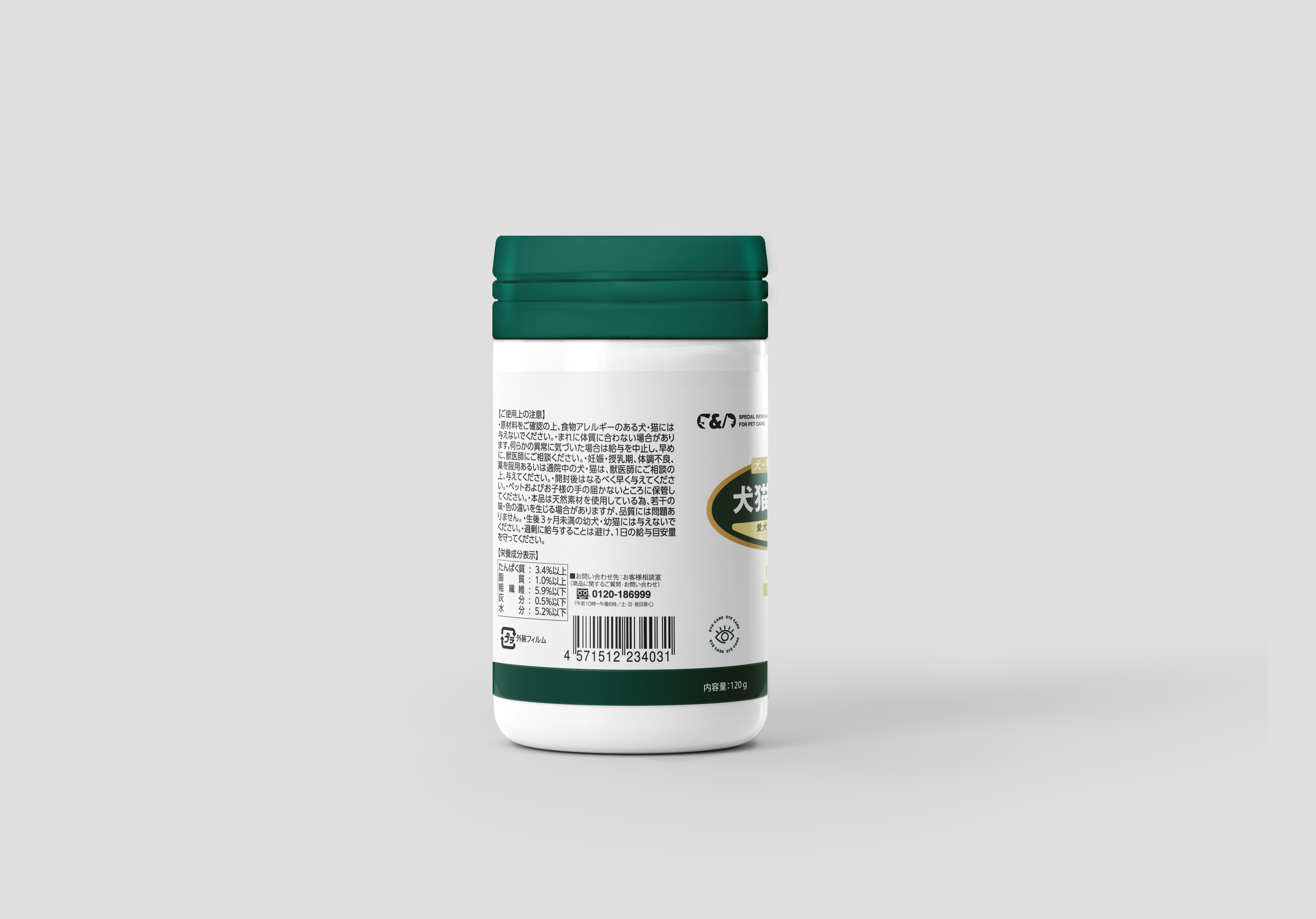 | 1日の摂取目安量 | 体重5kg未満:1g~2g 5kg以上:4g 10kg以上:8g 1日あたりの給与目安に、1日2回以上にに分けていつものフードに混ぜて食べさせてください。 |
